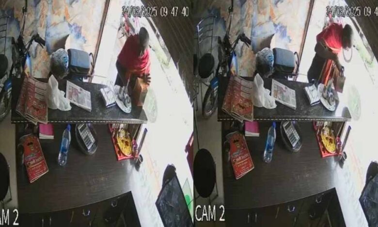 छत्तीसगढ़ के जगदलपुर शहर में चोर ने पुलिस थाने के सामने ही दिन-दहाड़े चोरी की वारदात को अंजाम दिया है. कोतवाली थाने के ठीक सामने स्थित महावीर थाली रेस्टोरेंट में रखी गई गौसेवा दान पेटी को एक बुजुर्ग चोर दिनदहाड़े लेकर फरार हो गया. इस घटना का सीसीटीवी फुटेज भी सामने आया है, जिसमें साफ दिखाई दे रहा है कि चोर पहले काउंटर पर रखी सौंफ खाता है और फिर मौके का फायदा उठाकर बेहद आराम से दान पेटी लेकर भीड़ में गायब हो जाता है.