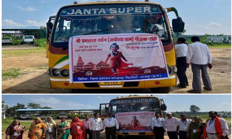 छत्तीसगढ़ शासन की महत्वाकांक्षी श्री रामलला दर्शन योजना के तीसरे चरण में एमसीबी जिले से चयनित 57 श्रद्धालुओं में से 50 श्रद्धालुओं का दल आज सुबह कलेक्टोरेट परिसर, मनेंद्रगढ़ से अयोध्या धाम के लिए रवाना हुआ। श्रद्धालुओं को अंबिकापुर रेलवे स्टेशन से विशेष ट्रेन द्वारा अयोध्या ले जाया जाएगा, जहां वे श्री रामलला के दिव्य दर्शन करेंगे। इस अवसर पर मुख्यमंत्री श्री विष्णुदेव साय ने सभी राम भक्तों को अपनी हार्दिक शुभकामनाएं और बधाई देते हुए कहा कि राज्य शासन द्वारा प्रदेश के श्रद्धालुओं को निःशुल्क अयोध्या धाम ले जाकर श्रीरामलला के दर्शन कराने की यह अनूठी पहल धार्मिक आस्था, संस्कृति और पर्यटन को नया आयाम दे रही है। मुख्यमंत्री ने कहा कि इस योजना से न केवल श्रद्धालुओं की वर्षों पुरानी आकांक्षा पूरी हो रही है बल्कि वे आर्थिक कारणों से जो यात्रा नहीं कर पाते थे, उन्हें भी अयोध्या धाम जाने का अवसर प्राप्त हो रहा है। श्रद्धालुओं ने इस योजना के लिए मुख्यमंत्री और जिला प्रशासन के प्रति आभार व्यक्त करते हुए कहा कि यह उनके लिए सपने के सच होने जैसा है। श्री रामलला दर्शन योजना के अंतर्गत श्रद्धालुओं को संपूर्ण पैकेज की सुविधा दी जा रही है, जिसमें छत्तीसगढ़ से अयोध्या तक यात्रा, रहने की व्यवस्था, मंदिर दर्शन, नाश्ता और भोजन की व्यवस्था शामिल है। श्रद्धालुओं की सुरक्षा और सुविधा को ध्यान में रखते हुए ट्रेन में टूर एक्सपर्ट, सुरक्षा कर्मी और चिकित्सकों का दल भी साथ रहेगा।