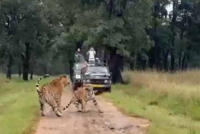 एक अक्टूबर से कान्हा टाइगर रिजर्व के गेट सैलानियों के लिए खोल दिए गए हैं। इसके बाद से बड़ी संख्या में पहुंच रहे पर्यटकों को बाघ के दीदार हो रहे हैं। बाघ-बाघिन से जुड़ा एक वीडियो गुरुवार को इंटरनेट मीडिया पर बहुप्रसारित है। इसमें वयस्क बाघ-बाघिन घास के मैदान से निकलकर सैलानियों की जिप्सी के सामने आते हैं।