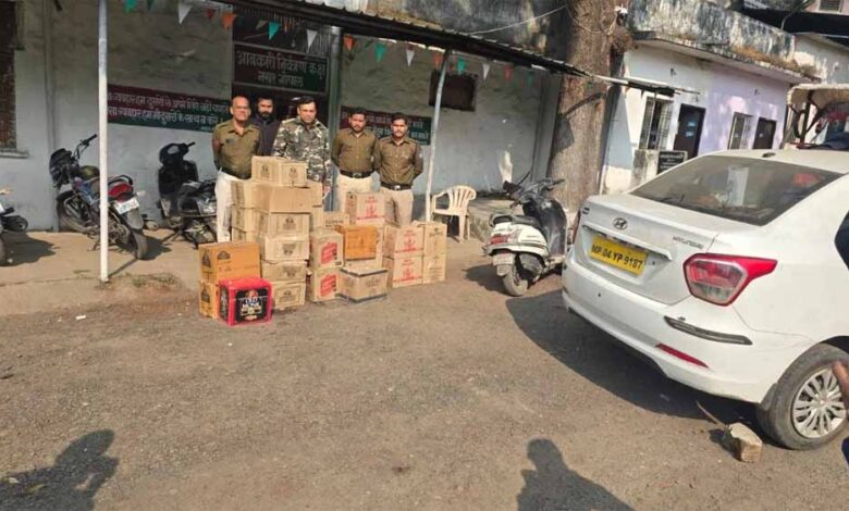 भोपाल की पॉश कॉलोनी में बड़ी कार्रवाई: साढ़े तीन लाख की अंग्रेजी शराब जब्त, तस्कर कार छोड़ कर फरार
