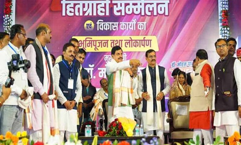 मुख्यमंत्री डॉ. यादव बुधवार को पन्ना जिले की पवई विधानसभा क्षेत्र की ग्राम पंचायत शाहनगर में हितग्राही सम्मेलन को संबोधित कर रहे थे। मुख्यमंत्री डॉ. यादव ने यहां करीब 83 करोड़ रूपए की लागत वाले 14 विकास कार्यों का लोकार्पण एवं भूमिपूजन किया। इसमें 9 करोड़ रूपए की लागत से बनी बिसानी-श्यामगिरी-कल्दा-सलेहा वाया मैन्हा मार्ग के उन्नयन कार्य का लोकार्पण एवं 74 करोड़ रूपए की लागत से बनने वाले 13 विकास कार्यों का भूमिपूजन शामिल हैं। इसके अंतर्गत मुख्यमंत्री ने 4.25 करोड़ रूपए की लागत से बनने वाले पवई में तिघरा बैराज का भूमिपूजन किया। मुख्यमंत्री डॉ. यादव ने दीप प्रज्ज्वलन एवं कन्या पूजन कर हितग्राही सम्मेलन की शुरूआत की। कार्यक्रम का शुभारंभ वंदे मारतम् गायन के साथ हुआ। मुख्यमंत्री डॉ. यादव ने कार्यक्रम स्थल पर विभिन्न विभागों द्वारा लगाई गई विकास प्रदर्शनी का अवलोकन किया।