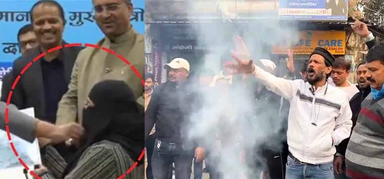 याद दिल दें कि बिहार के मुख्यमंत्री नीतीश कुमार के द्वारा नियुक्ति पत्र वितरण के दौरान कथित तौर पर एक महिला डॉक्टर के हिजाब हटाने वाले प्रकरण को लेकर झारखंड की राजधानी रांची में मुस्लिम युवा मंच ने जोरदार प्रदर्शन किया. संगठन के अध्यक्ष मोहम्मद शाहिद अय्यूबी के नेतृत्व में आक्रोशित युवाओं ने मुख्यमंत्री नीतीश कुमार का पुतला दहन कर कड़ा विरोध दर्ज कराया.
