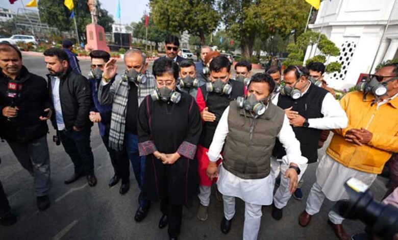 दिल्ली प्रदूषण पर सियासत तेज: ‘आप’ विधायकों का विधानसभा परिसर में प्रदर्शन