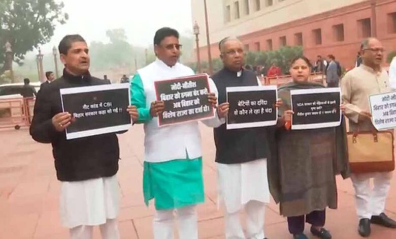 नीट छात्रा मर्डर केस मामला सड़क से लेकर संसद तक पहुंच चुका है। सोमवार को लोकसभा और विधानसभा में राष्ट्रीय जनता दल के सांसद और विधायकों ने इस मामले को लेकर राष्ट्रीय जनतांत्रिक गठबंधन की सरकार पर जमकर हमला बोला। लोकसभा के बाहर राजद सांसदों ने हाथ में बैनर और पोस्टर लेकर प्रदर्शन करते दिखे। सांसद का कहना है कि पीएम मोदी और सीए नीतीश कुमार की जोड़ी वाली सरकार जनता को ठग रही है। बिहार में बेटियां सुरक्षित नहीं है। बेटियों के दरिंदों से चंदा लिया जा रहा है। नीट छात्रा मर्डर केस में अब तक खुलासा नहीं हो पाया। सरकार ने खुद को बचाने के लिए इस मामले की जांच सीबीआई को सौंप दी है। सांसद मीसा भारती ने कहा कि हमलोगों ने नीट की छात्रा को न्याय दिलाने की मांग की है। बिहार की जनता के साथ यह सरकार गलत कर रही है। महिलाओं की इतनी घृणा क्यों हैं इन्हें? इसका जवाब देना होगा।