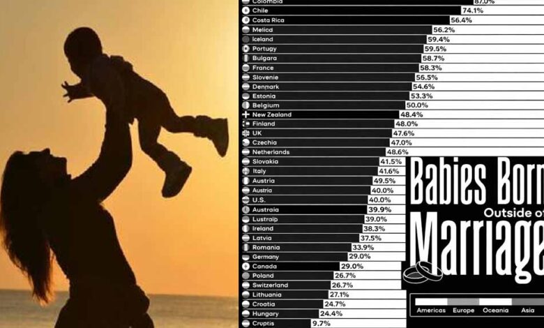 ओईसीडी (OECD) के नए आंकड़ों के अनुसार, विश्व के कई देशों में औसतन लगभग 43% बच्चे विवाह के बाहर पैदा हो रहे हैं। यानी बिना शादी के महिलाएं मां बन रही हैं। आइए जानते हैं कि इस मामले में कौन-से देश सबसे आगे हैं…