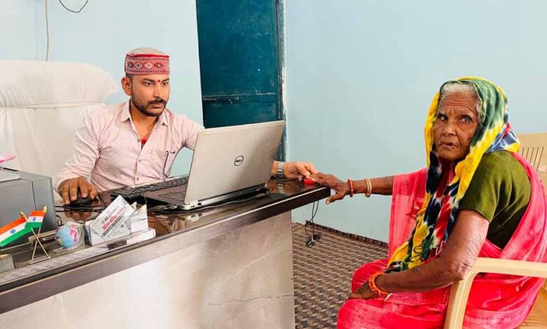 डिजिटल सुविधा केंद्र में 86 वर्षीय भक्तिन राय को अंगूठे के निशान पर मिल रही सुविधाएं