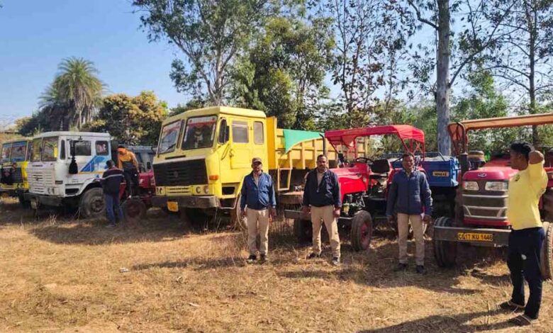 अवैध उत्खनन पर खनिज विभाग का बड़ा एक्शन, पोकलेन सहित 16 वाहन जब्त