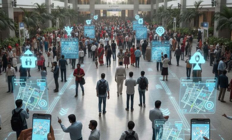 वेब आधारित सिस्टम: मुख्य प्रवेश द्वार और प्रमुख स्थानों पर QR कोड लगाए जाएंगे। स्कैन करते ही मोबाइल पर इंटरैक्टिव मैप खुल जाएगा।