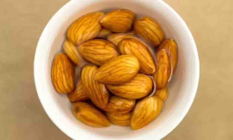 भीगे बादाम खाने का सही तरीका – रात में 5 से 10 बादाम एक कटोरी पानी में भिगो दें। सुबह छिलका उतारकर खाली पेट खाएं।