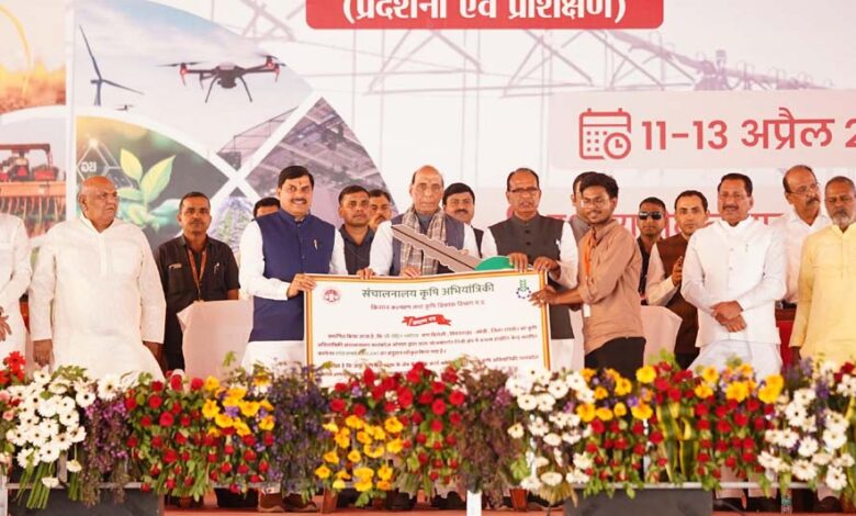 रायसेन में दिवसीय राष्ट्रीय उन्नत कृषि महोत्सव का आगाज, मंच पर एक साथ दिखे रक्षामंत्री, कृषि मंत्री और मुख्यमंत्री