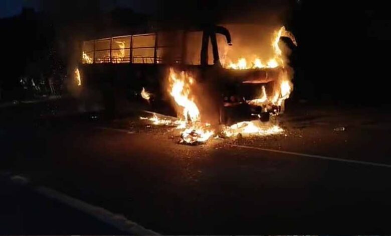 Gwalior में बस हादसा, टायर फटने के बाद लगी आग; पुलिस ने कांच तोड़कर 16 लोगों को बचाया