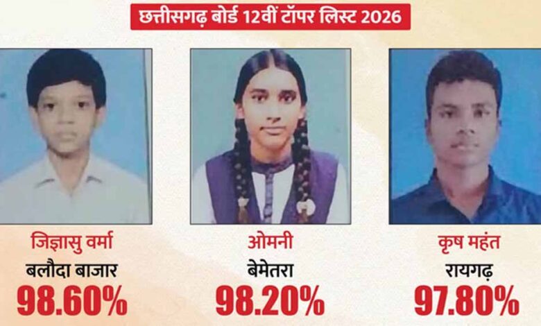 CG Board Result 2026 जारी: 12वीं में जिज्ञासु वर्मा, 10वीं में संध्या नायक बनीं स्टेट टॉपर