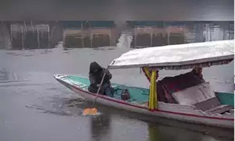 कश्मीर में कड़ाके की ठंड, डल झील के ऊपर बनी बर्फ की पतली परत