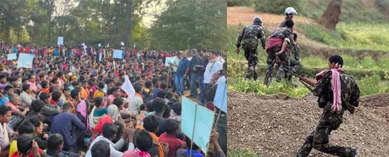 नक्सली मुठभेड़ में क्रॉस फायरिंग में 6 माह की मासूम की मौत पर मामला गरमाया, जंगल में ग्रामीणों का आंदोलन