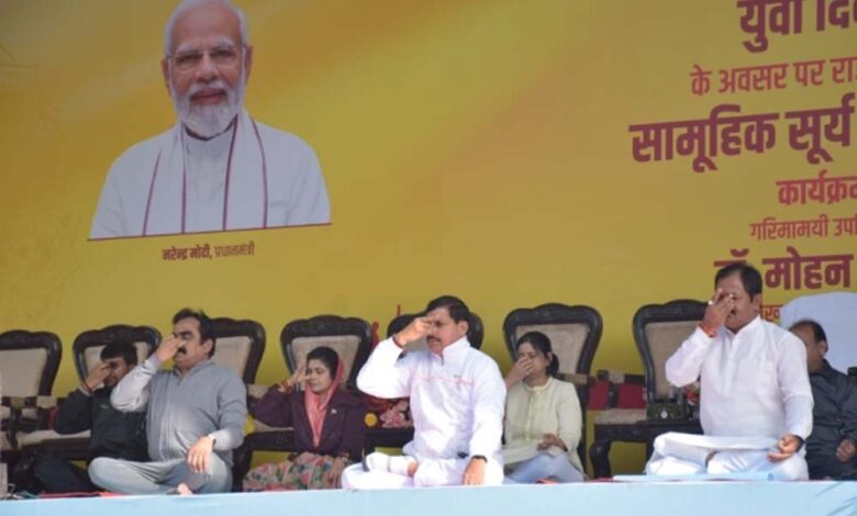 स्वामी विवेकानंद जयंती के उपलक्ष्य में राष्ट्रीय युवा दिवस 12 जनवरी, 2024 को प्रतिवर्ष की भाँति इस वर्ष भी प्रदेश के समस्त विद्यालयों में सामूहिक सूर्य नमस्कार का आयोजन होगा। इस अवसर पर मुख्यमंत्री डॉ. मोहन यादव भोपाल के सुभाष उत्कृष्ट विद्यालय और स्कूल शिक्षा मंत्री उदय प्रताप सिंह नरसिंहपुर में विद्यार्थियों के साथ योग करेंगे।