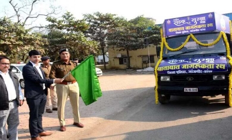 जांजगीर-चांपा: सड़क सुरक्षा जागरूकता रथ को कलेक्टर और एसपी ने किया रवाना, लोगों को बताए यातायात के नियम