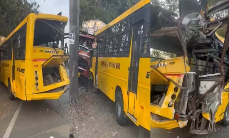 इंदौर में चार्टर्ड बस ने मारी टक्कर, ट्रक से टकराई स्कूल बस, एक स्टूडेंट सहित 4 घायल