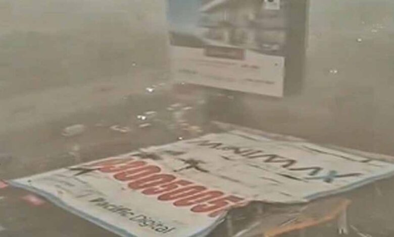 सोमवार दोपहर अचानक तेज हवाओं के साथ आई धूल भरी आंधी और उसके बाद बारिश ने शहर में कहर बरपाया। इस दौरान एक विशाल विज्ञापन होर्डिंग उखड़ गया और शाम करीब 4:15 बजे कई घरों और एक पेट्रोल पंप पर गिर गया। इस हादसे में कई लोग घायल हो गए।