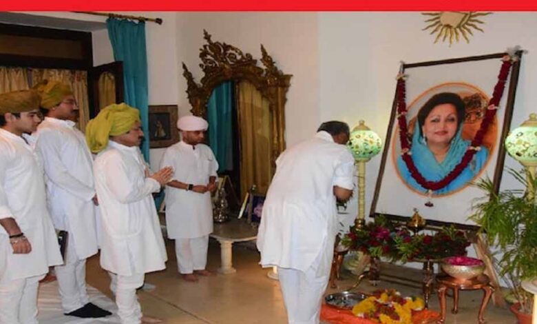 इसके बाद दिग्विजय सिंह जयविलास पैलेस पहुंचे। वहां पहुंचकर दिवंगत माधवी राजे के चित्र पर पुष्प अर्पित कर श्रद्धांजलि दी। उन्होंने ज्योतिरादित्य सिंधिया और महाआर्यमन सिंधिया से बात कर उन्हें सांत्वना दी। दिग्विजय सिंह 2020 में सिंधिया के कांग्रेस छोड़कर भाजपा में जाने के बाद पहली बार जयविलास पैलेस पहुंचे। सिंह से मीडिया से भी बातचीत की। उन्होंने कहा कि मैं ग्वालियर आया हूं स्वर्गीय राजमाता के देहांत पर श्रद्धांजलि देने और ज्योतिरादित्य सिंधिया और उनके परिवारजनों से मिलने के लिए। जब उनसे भाजपा के चार सौ पर के नारे को लेकर सवाल पूछा गया तो वे जवाब दिए बिना ही आगे बढ़ गए।