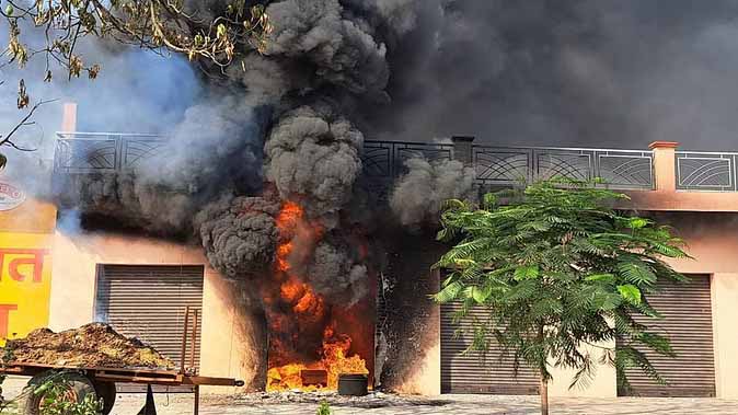 कपिल ने बोतलें भरने के लिए मशीन चलाई तो अचानक आग लग गई। तेल ने आग पकड़ ली। इससे कपिल के हाथ पैर फूल गए। उसने सबसे पहले तीनों बालकों को दुकान से बाहर निकाल। इस दौरान वह मामूली रूप से झुलस गए। इसके बाद गोदाम में आग भड़क गई।