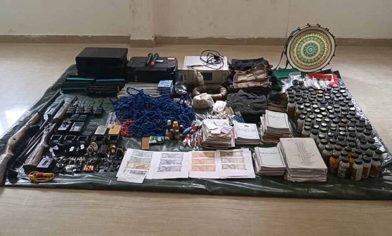इसके बाद सुरक्षा बल ने घटनास्थल की सघन सर्चिंग की तो जवानों को अलग-अलग जगहों से नक्सलियों द्वारा छिपाकर रखे गये नकली नोट बनाने की मशीन, कलर प्रिंटर मशीन, इंवर्टर मशीन, कलर इंक के साथ 50, 100, 200 व 500 रुपये के नकली नोट के सैंपल मिले हैं। जवानों ने इसके अलावा भरमार बंदूक, वायरलेस सेट, मैग्जीन पोच, नक्सली काली वर्दी कपड़ा एवं भारी मात्रा में विस्फोटक सामग्री भी बरामद किया है।