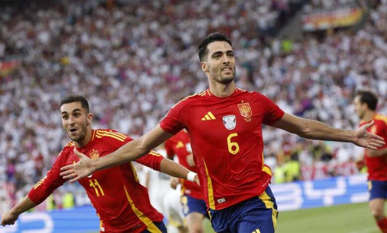 माइकल मेरिनो के अतिरिक्त समय के अंतिम क्षणों में किए गए गोल की मदद से स्पेन ने रोमांचक क्वार्टर फाइनल में मेजबान जर्मनी को 2-1 से पराजित करके यूरोपीय फुटबाल चैंपियनशिप (यूरो 2024) के सेमीफाइनल में प्रवेश किया। दोनों टीम निर्धारित समय तक 1-1 से बराबरी पर थी। जब मैच पेनल्टी शूटआउट की तरफ बढ़ रहा था तब स्थानापन्न खिलाड़ी मेरिनो ने 119वें मिनट में गोल करके अपनी टीम को यादगार जीत दिलाई।