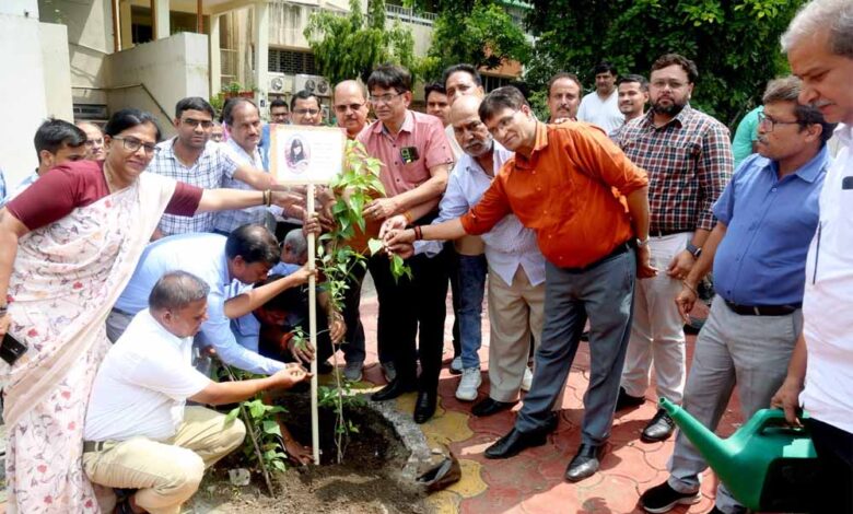 एक पेड़ माँ के नाम: स्व. श्रीमती पूजा थापक की स्मृति में जनसम्पर्क परिसर में रोपा हरसिंगार का पौधा