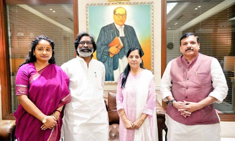 हेमंत सोरेन ने पत्नी कल्पना सोरेन के साथ की सुनीता केजरीवाल से मुलाकात, बीजेपी ने न्यायपालिका को अपमानित किया