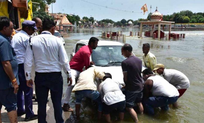 बरसात के कारण उज्जैन में उफान पर शिप्रा, अचानक आई बाढ़ से बहने लगीं कारें, कई भी मंदिर डूबे