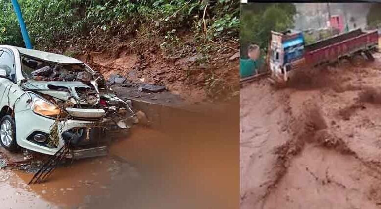छत्तीसगढ़-दंतेवाड़ा में NMDC का डैम टूटने से पानी में बही गाड़ियां, जान बचाकर भागे लोग