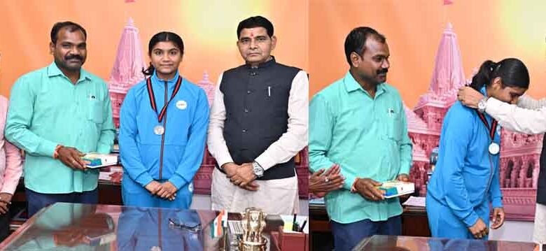 छत्तीसगढ़ की बेटियों ने मान बढ़ाया, खेल मंत्री टंकराम वर्मा से सिल्वर पदक विजेता ने की मुलाकात