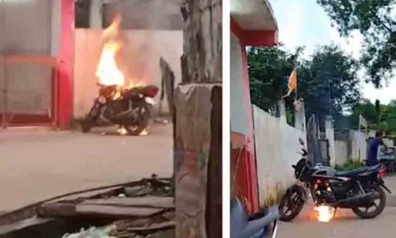 बाद में वह मंदिर में अंदर चले गए। वापस आकर देखा तो उनकी बाइक आग की लपटों से घिरी धू-धू कर जल रही थी। आसपास के लोगों ने आग पर काबू करने की कोशिश की, लेकिन तब तक बाइक जलकर खाक हो गई। बाद में आरक्षक की शिकायत पर पुलिस ने आरोपित के खिलाफ केस दर्ज कर लिया। फिलहाल आरोपित की गिरफ्तारी नहीं हुई है।