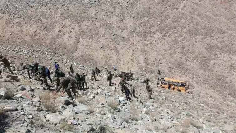 लेह के दुर्गुक इलाके में गुरुवार को एक भीषण हादसा हो गया। यहां एक स्कूल बस दुर्घटनाग्रस्त होकर 200 मीटर गहरी खाई में जा गिरी। इसमें छह लोगों के मारे जाने की शुरुआती जानकारी आ रही है। वहीं करीब 19 अन्य लोग घायल बताए जा रहे हैं।