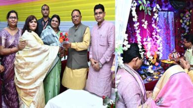 छत्तीसगढ़ के मुख्यमंत्री विष्णु देव पहुंचे राजस्व मंत्री टंकराम वर्मा के निवास, तीजा मिलन समारोह में की भगवान गणेश की पूजा-अर्चना