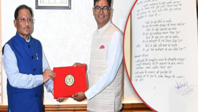 छत्तीसगढ़ विधानसभा में बजट वित्त मंत्री ओपी चौधरी ने अपने हाथ से लिखा