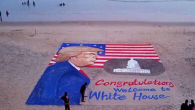 सैंड आर्टिस्ट सुदर्शन पटनायक ने डोनाल्ड ट्रंप का 47 फीट लंबा चित्र बनाया