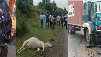कबीरधाम : तेज रफ्तार ट्रक ने पहले कार को मारी टक्कर, फिर आठ गाय को रौंदा, दो मवेशियों की मौत